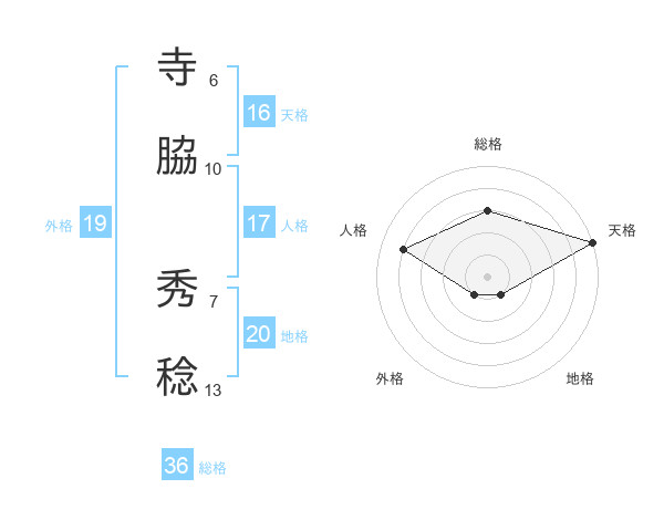 寺脇 秀稔さんを姓名の画数から五運を鑑定