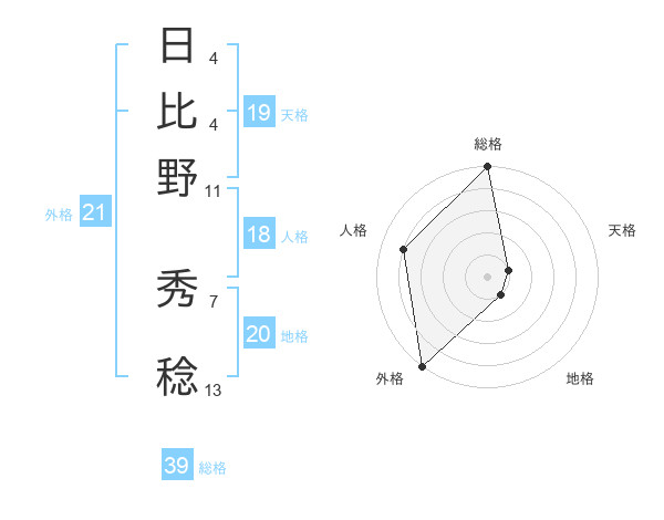 日比野 秀稔さんを姓名の画数から五運を鑑定
