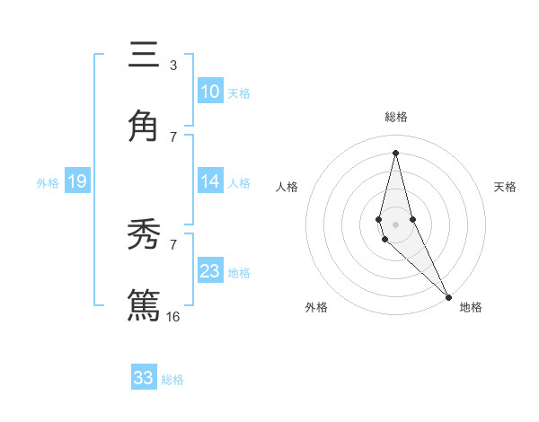 三角 秀篤さんの総格は33画の4点!