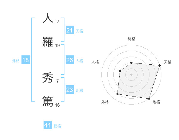 人羅 秀篤さんの天格は21画の5点!