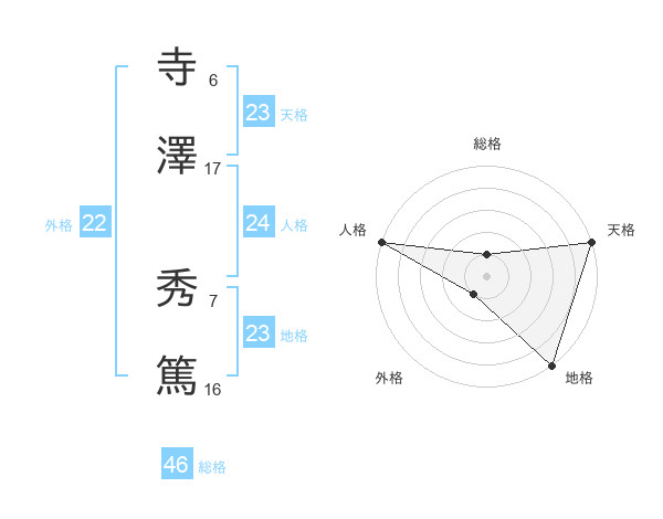 寺澤 秀篤さんの天格は23画の5点!
