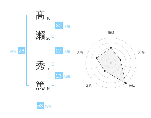 髙瀨 秀篤さんを姓名の画数から五運を鑑定