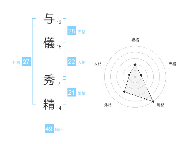 与儀 秀精さんの総格は49画の2点!
