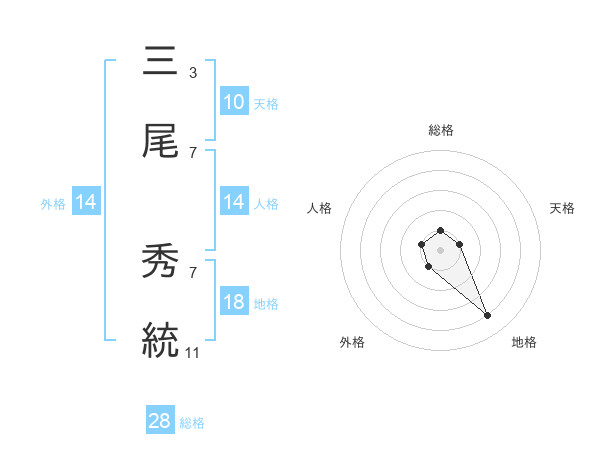 三尾 秀統さんを姓名の画数から五運を鑑定