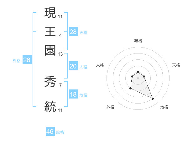 現王園 秀統さんを姓名の画数から五運を鑑定