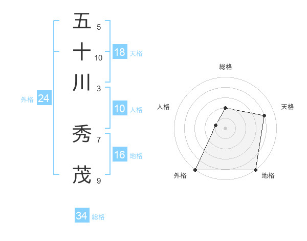 五十川 秀茂さんを姓名の画数から五運を鑑定