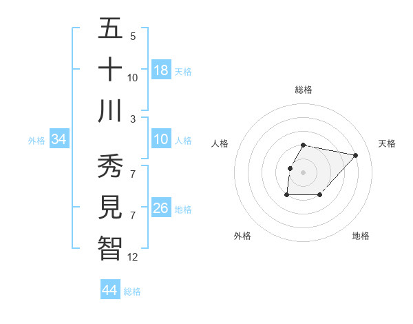 五十川 秀見智さんの総格は44画の2点!