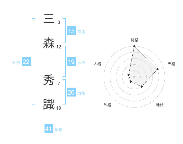 三森 秀識さんの天格は15画の4点!