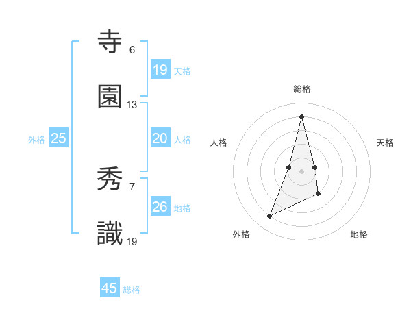 寺園 秀識さんを姓名の画数から五運を鑑定
