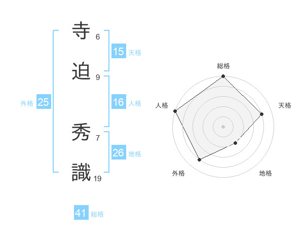 寺迫 秀識さんの天格は15画の4点!