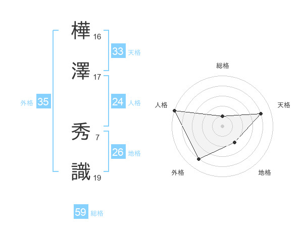 樺澤 秀識さんを姓名の画数から五運を鑑定