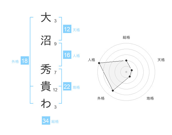 大沼 秀貴わさんを姓名の画数から五運を鑑定