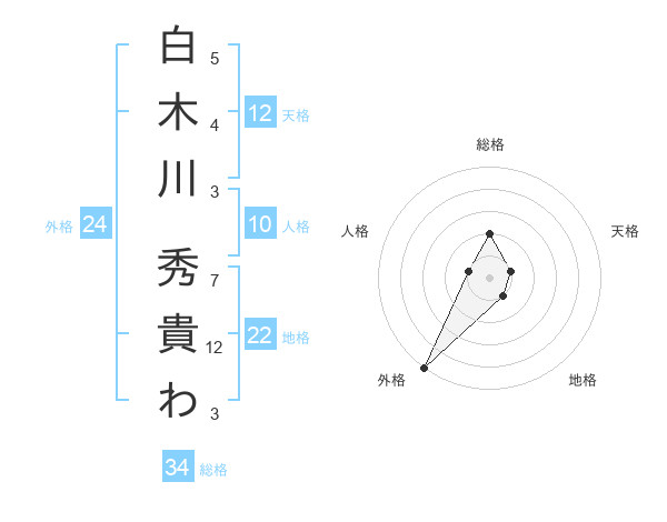 白木川 秀貴わさんを姓名の画数から五運を鑑定