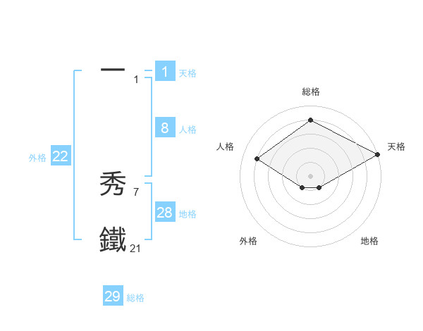 一 秀鐵さんの総格は29画の4点!