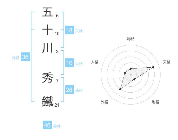 五十川 秀鐵さんを姓名の画数から五運を鑑定