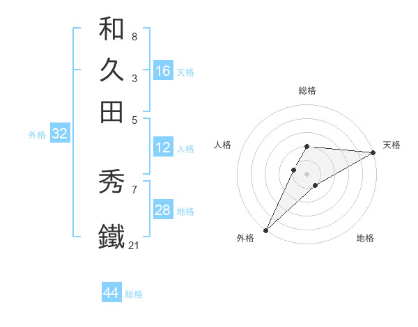 和久田 秀鐵さんの天格は16画の5点!