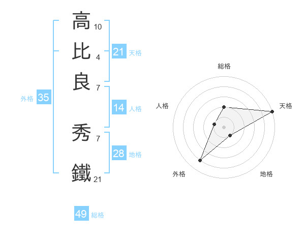 高比良 秀鐵さんの天格は21画の5点!