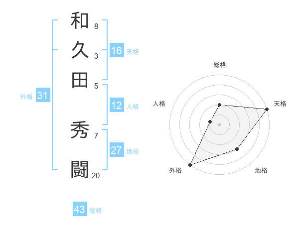 和久田 秀闘さんを姓名の画数から五運を鑑定