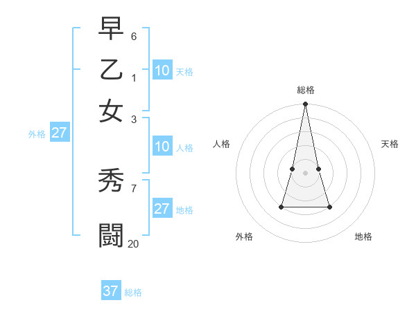 早乙女 秀闘さんを姓名の画数から五運を鑑定