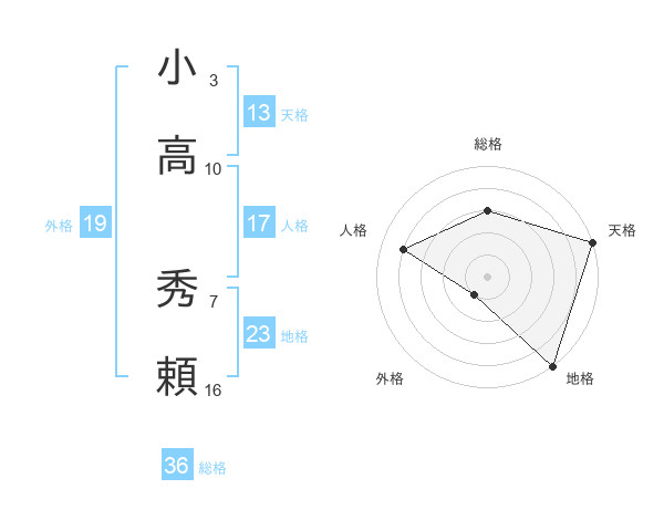 小高 秀頼さんの天格は13画の5点!