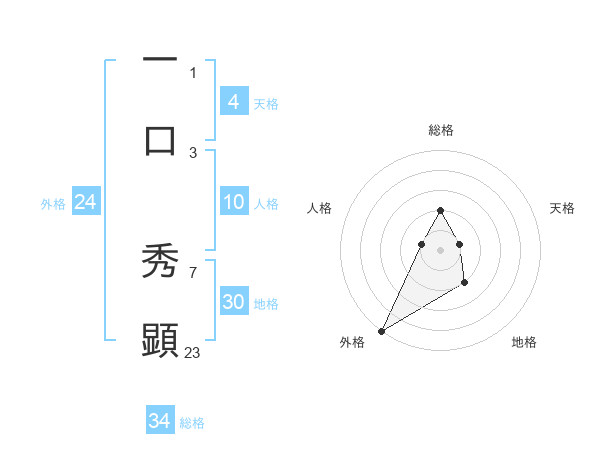 一口 秀顕さんを姓名の画数から五運を鑑定