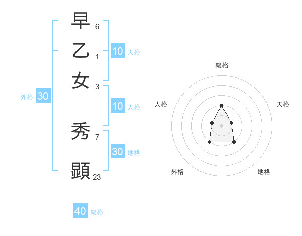 早乙女 秀顕さんの総格は40画の2点!