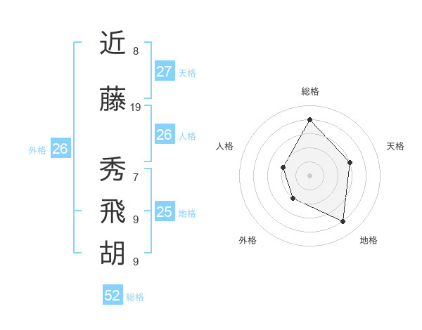 近藤 秀飛胡さんを姓名の画数から五運を鑑定