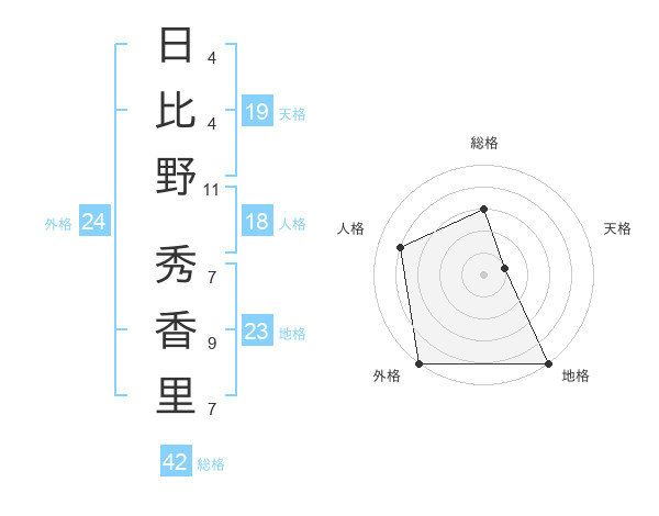 日比野 秀香里さんを姓名の画数から五運を鑑定