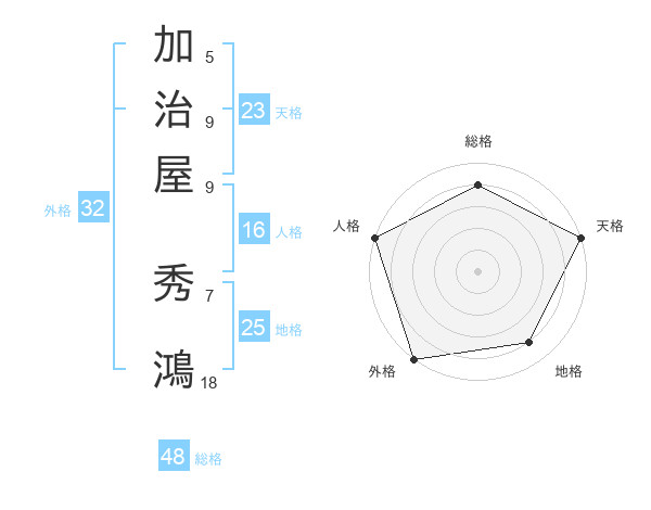 加治屋 秀鴻さんの天格は23画の5点!