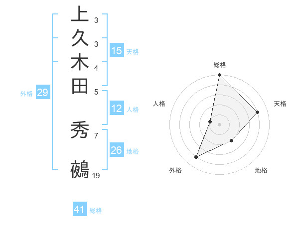上久木田 秀鵺さんを姓名の画数から五運を鑑定
