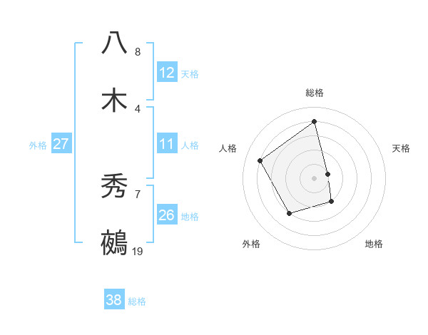 八木 秀鵺さんを姓名の画数から五運を鑑定