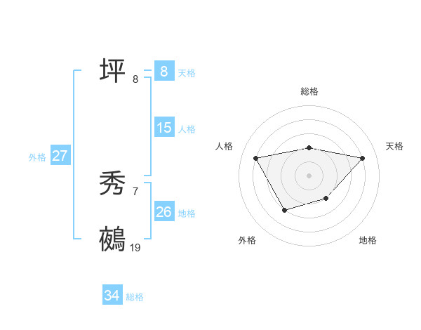 坪 秀鵺さんの天格は8画の4点!
