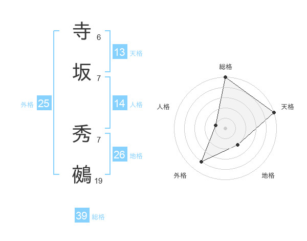 寺坂 秀鵺さんの総格は39画の5点!