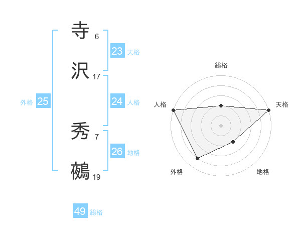 寺沢 秀鵺さんの天格は23画の5点!