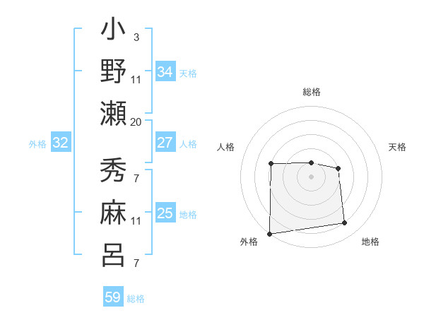 小野瀬 秀麻呂さんの総格は59画の1点!