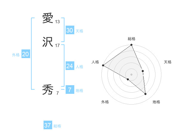 愛沢 秀さんの総格は37画の5点!