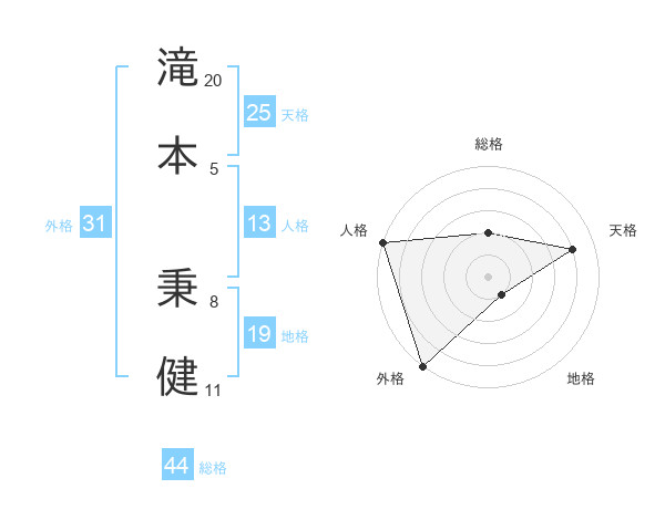 滝本 秉健さんの外格は31画の5点!