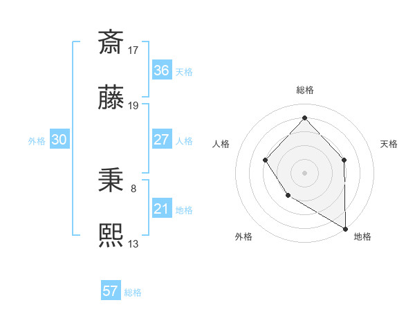 斎藤 秉熙さんの総格は57画の4点!