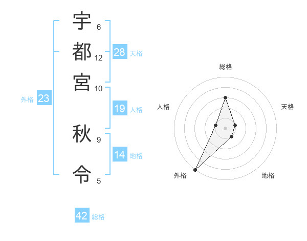 宇都宮 秋令さんを姓名の画数から五運を鑑定