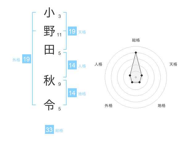 小野田 秋令さんを姓名の画数から五運を鑑定