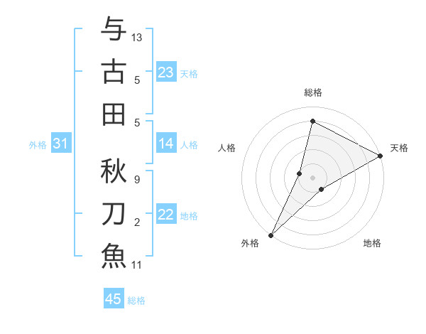 与古田 秋刀魚さんを姓名の画数から五運を鑑定