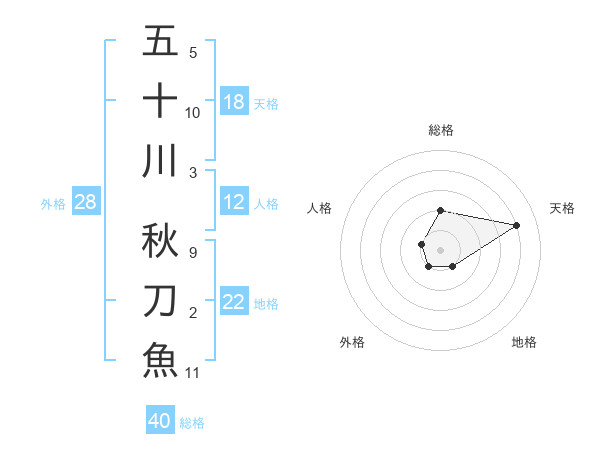 五十川 秋刀魚さんを姓名の画数から五運を鑑定
