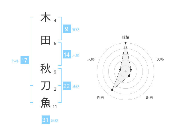 木田 秋刀魚さんを姓名の画数から五運を鑑定