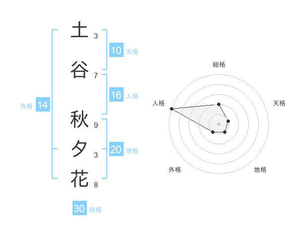 土谷 秋夕花さんを姓名の画数から五運を鑑定