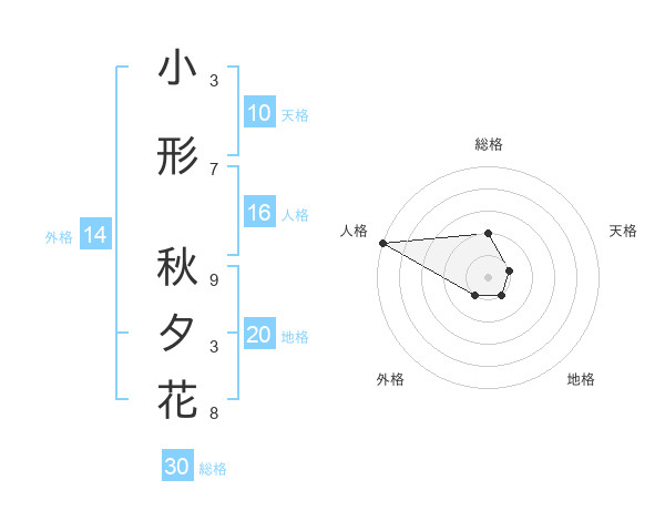 小形 秋夕花さんを姓名の画数から五運を鑑定