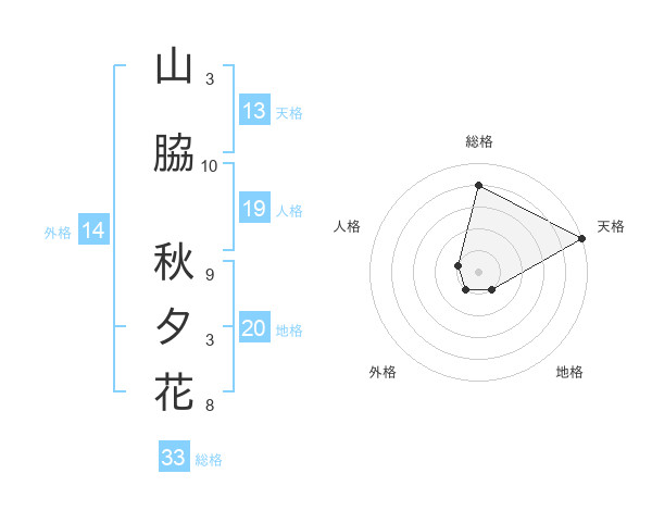 山脇 秋夕花さんを姓名の画数から五運を鑑定