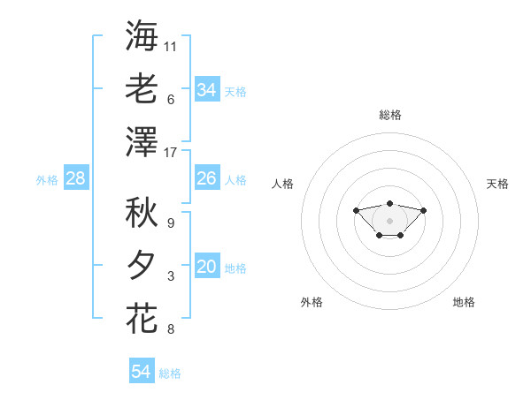 海老澤 秋夕花さんの総格は54画の1点!