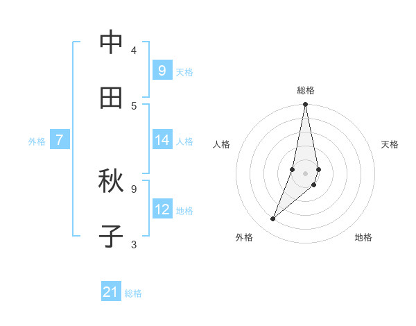 中田 秋子さんの総格は21画の5点