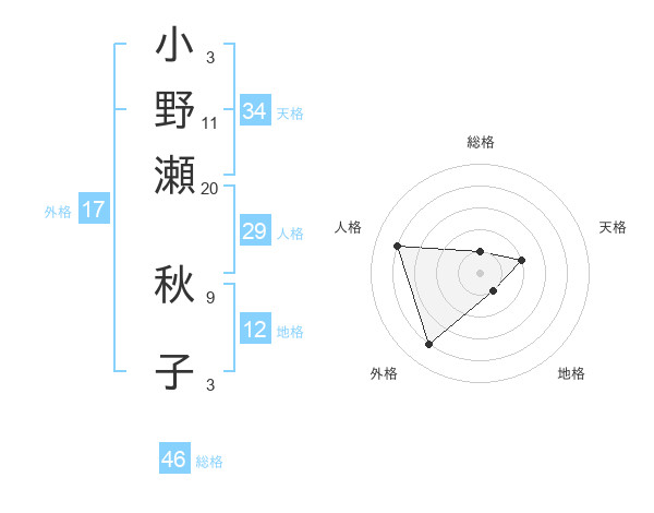 小野瀬 秋子さんを姓名の画数から五運を鑑定