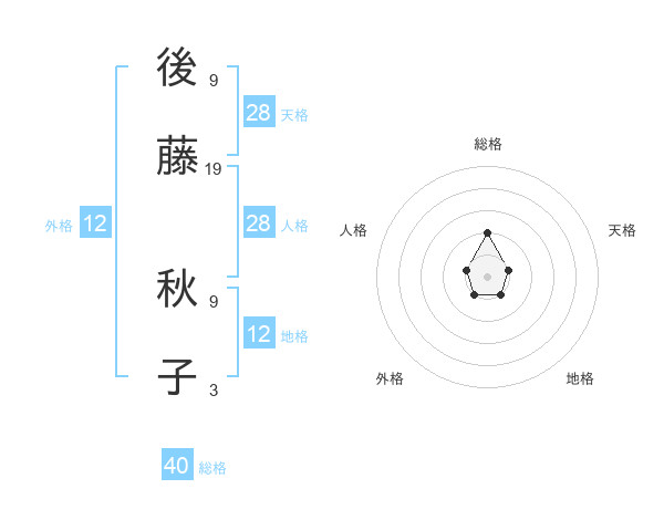 後藤 秋子さんの天格は28画の1点!